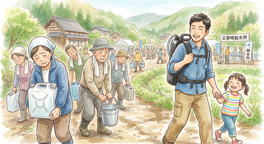 1. その「白いプラスチックタンク」、本当に運べますか? 災害時の水備蓄といえば、長らく硬質プラスチック製のポリタンクが定番だった。昭和の時代から家庭や自治体の… -